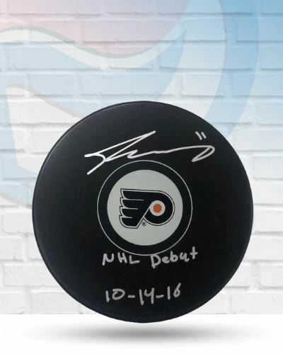 This Travis Konecny Philadelphia Flyers autographed logo puck with inscription is the perfect addition to your fan cave. Travis Konecny personally hand-signed this puck during a private autograph signing. Fan Cave guarantees this autograph with a Certificate of Authenticity and tamper resistant hologram from James Spence Authentication. Whether you’re looking to add to your personal collection or seeking the best gift, the Travis Konecny Philadelphia Flyers autographed logo puck with inscription is a great choice!Â