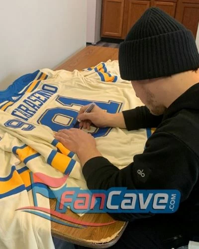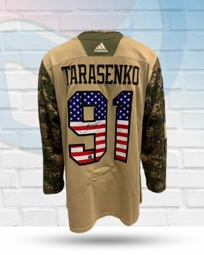 This Vladimir Tarasenko St Louis Blues autographed Military jersey is the perfect addition to your fan cave or game day wardrobe. Vladimir Tarasenko personally hand-signed this jersey during a private autograph signing. Fan Cave guarantees this autograph with a Certificate of Authenticity and tamper resistant hologram from Fan Cave Sports. Whether you’re looking to add to your personal collection or seeking the best gift, the Vladimir Tarasenko St Louis Blues autographed Adidas Military jersey is a great choice!