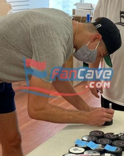 This Zach Sanford St Louis Blues autographed 2020 official game puck is the perfect addition to your fan cave. Zach Sanford personally hand-signed this puck during a private autograph signing. Fan Cave guarantees this autograph with a Certificate of Authenticity and tamper resistant hologram from Fan Cave Sports. Whether you’re looking to add to your personal collection or seeking the best gift, the Zach Sanford St Louis Blues autographed 2020 official game puck is a great choice!Â