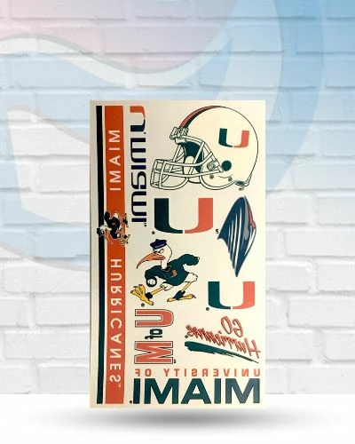 Make it known who you root for when you sport these Miami Hurricanes temporary tattoos! They’re simple to apply and remove for a quick and easy display of enthusiasm on game day. This pack comes with eight tattoos, each featuring authentic team colors and graphics, so you can save them for future games or share them with your fellow fans.