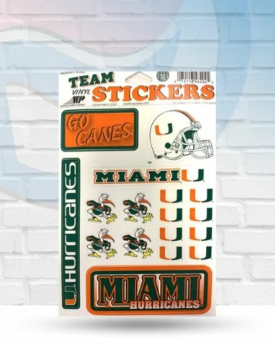 Show your pride for your favorite team with this Miami Hurricanes Vinyl decal sheet. These decals can be placed on a variety of surfaces with their self-adhesive back. No one will question who your favorite team is when you display these Miami Hurricanes Vinyl decals.