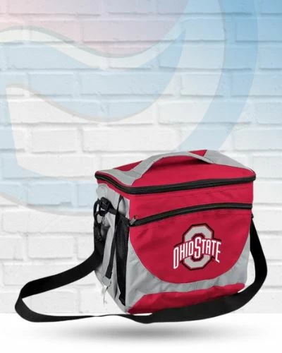 This functional Ohio State Buckeyes 24 Can Cooler is a practical size for any outing. It’s made with a heat-sealed, leak-proof lining to help keep your snacks or drinks icy cold. Holds ice for 24 hours. It has a zipper dry pocket on the front and a mesh pocket on each side. Use the handle on the lid or the detachable shoulder strap. An attached metal bottle opener is also located on the side. The two-color design features a logo on the front.