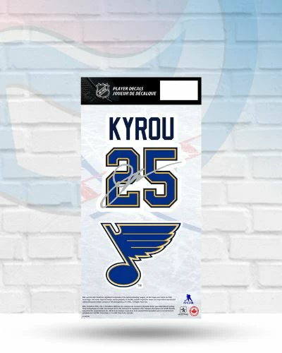 Show your team support with this Jordan Kyrou St Louis Blues set of two player decals. Fan Cave teamed up with Mustang to develop these Exclusive Jordan Kyrou autograph decals that you will only find here. These decals can be placed on a variety of surfaces with their self-adhesive back. No one will question who your favorite team is when you display these Jordan Kyrou St Louis Blues set of two player decals.Â