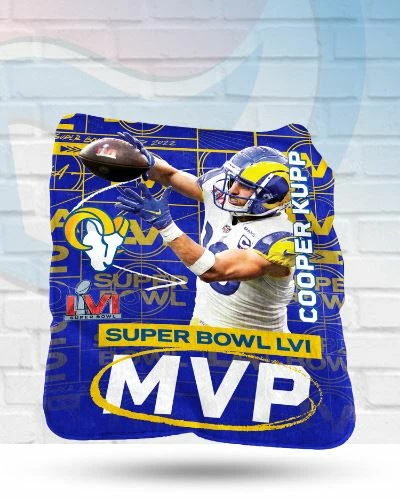 Fold up this Los Angeles Rams silk touch throw blanket, and keep it nearby for comfort when needed. The perfect addition to any football lover’s decor, this bold fleece throw blanket displays the Super Bowl MVP Cooper Kupp along with the Rams officially licensed logo and colors. The LVI Super Bowl MVP Cooper Kupp Los Angeles Rams silk touch throw blanket is the perfect way to stay warm and display your team pride!