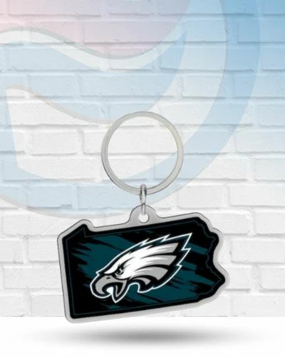 Take your team spirit with you wherever you go with this Philadelphia Eagles Pennsylvania state shaped keychain. This keychain will make your keys stand out while displaying your Eagles pride. The Philadelphia Eagles Pennsylvania state shaped keychain is the perfect addition to your key ring.