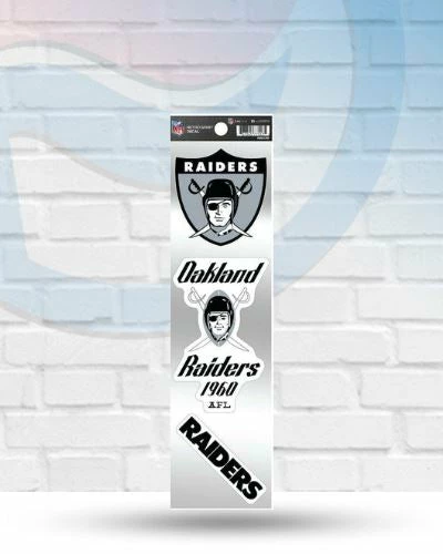 Show your Las Vegas Raiders pride with this 3-Pack Decal Set. This NFL decal set includes 3 vinyl retro die cut decals measuring approximately 3″ each. They are perfect for your car, laptop, cooler and more and make great gifts!