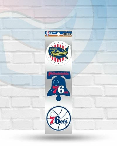 Show your Philadelphia 76ers pride with this 3-Pack Decal Set. This NBA decal set includes 3 vinyl retro die cut decals measuring approximately 3″ each. They are perfect for your car, laptop, cooler and more and make great gifts!