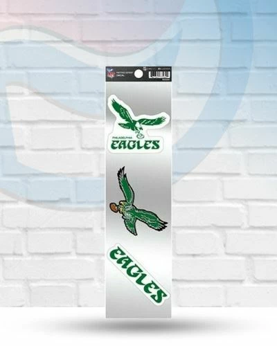 Show your Philadelphia Eagles pride with this 3-Pack Decal Set. This NFL decal set includes 3 vinyl retro die cut decals measuring approximately 3″ each. They are perfect for your car, laptop, cooler and more and make great gifts!