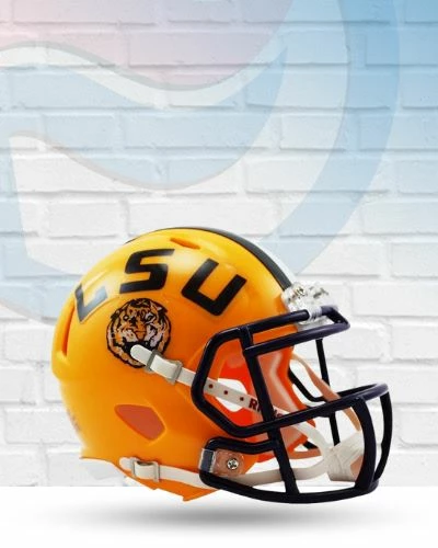 LSU Tigers Speed Riddell Mini Football Helmet. Whether you’re using it to display your Tigers pride or collect your favorite players’ autographs, this LSU Tigers Speed Mini Helmet is the perfect addition to your Tigers collection! The most popular collectible in Riddell’s history, your new Tigers helmet is great for displaying in your home or office and makes the perfect gift for the true sports fan. The speed helmet is decorated with vibrant team decals on each side.