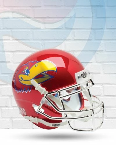 Kansas Jayhawks Scarlet Red Mini Football Helmet. Whether you’re using it to display your Jayhawks pride or collect your favorite players’ autographs, this Kansas Jayhawks Scarlet Red Mini Helmet is the perfect addition to your Jayhawks collection! Your new Jayhawks helmet is great for displaying in your home or office and makes the perfect gift for the true sports fan.