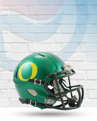 Oregon Ducks Speed Riddell Mini Football Helmet. Whether you’re using it to display your Ducks pride or collect your favorite players’ autographs, this Oregon Ducks Speed Mini Helmet is the perfect addition to your Ducks collection! The most popular collectible in Riddell’s history, your new Ducks helmet is great for displaying in your home or office and makes the perfect gift for the true sports fan. The speed helmet is decorated with vibrant team decals on each side.Â