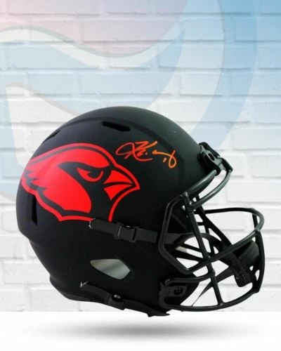 This Kyler Murray Arizona Cardinals autographed full size Eclipse speed replica helmet is the perfect addition to your fan cave. Kyler personally hand-signed this helmet during a private autograph signing. Fan Cave guarantees this autograph with a Certificate of Authenticity and tamper resistant hologram from Beckett Authentication Services. Whether you’re looking to add to your personal collection or seeking the best gift, the Kyler Murray Arizona Cardinals autographed full size Eclipse speed replica helmet is a great choice!Â