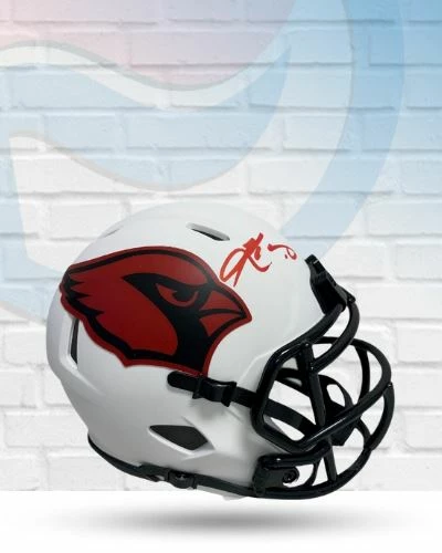 This Kyler Murray Arizona Cardinals Autographed Lunar Eclipse autographed lunar eclipse mini speed helmet is the perfect addition to your fan cave. Kyler personally hand-signed this helmet during a private autograph signing. Fan Cave guarantees this autograph with a Certificate of Authenticity and tamper resistant hologram from Beckett Authentication Services. Whether you’re looking to add to your personal collection or seeking the best gift, the Kyler Murray Arizona Cardinals Autographed Lunar Eclipse mini speed helmet is a great choice!Â