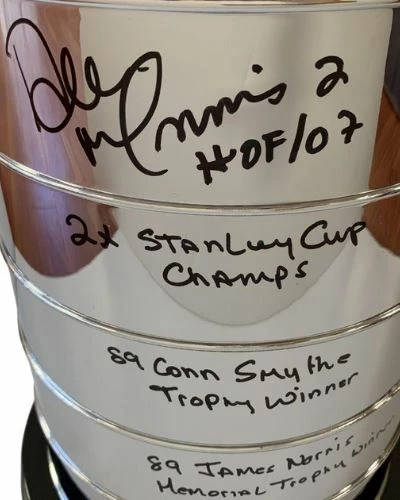 This Al MacInnis St Louis Blues autographed Stanley Cup Replica Trophy is the perfect addition to your fan cave. Al MacInnis personally hand-signed this cup during a private autograph signing. Fan Cave guarantees this autograph with a Certificate of Authenticity and tamper resistant hologram from Fan Cave Sports. Whether you’re looking to add to your personal collection or seeking the best gift, the Al MacInnis St Louis Blues autographed Stanley Cup Replica trophy is a great choice!Â