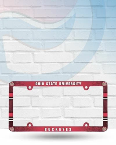 Make sure everyone you pass knows you root for the Ohio State Buckeyes with this plastic license plate frame. This full color license plate frame is for a standard car license plate, front or back. Whether you’re headed to the game or out for a ride, make sure you support your Ohio State Buckeyes by displaying this on your vehicle!