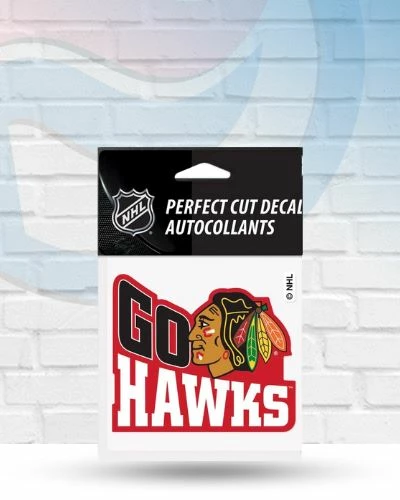 Show your team support with this Chicago Blackhawks slogan perfect cut decal 4×4. These decals can be placed on a variety of surfaces with their self-adhesive back. No one will question who your favorite team is when you display this Chicago Blackhawks slogan perfect cut decal 4×4.Â