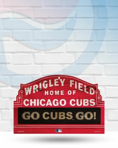 Display your team pride in your garage or fan cave with this Chicago Cubs Wrigley Field 11″ x 17″ Wooden Sign. Its bold team graphics will have no one guessing who you cheer for. The Chicago Cubs Wrigley Field 11″ x 217″ Wooden Sign is the perfect way to show your loyalty to the Cubs.