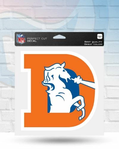 Show your team support with this Denver Broncos retro perfect cut decal 8×8. These decals can be placed on a variety of surfaces with their self-adhesive back. No one will question who your favorite team is when you display this Denver Broncos retro perfect cut decal 8×8.Â
