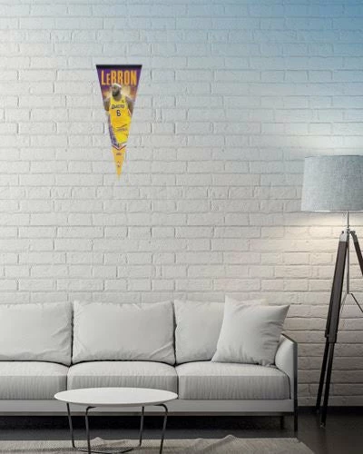 Show off your team pride at the game or in your home, office or fan cave with the LeBron James Los Angeles Lakers 12″ X 30″ Premium Pennant. No one will question which team holds your loyalty when you show off this pennant. The LeBron James Los Angeles Lakers 12″ X 30″ Premium Pennant is the perfect collectible to display your Lakers pride!Â