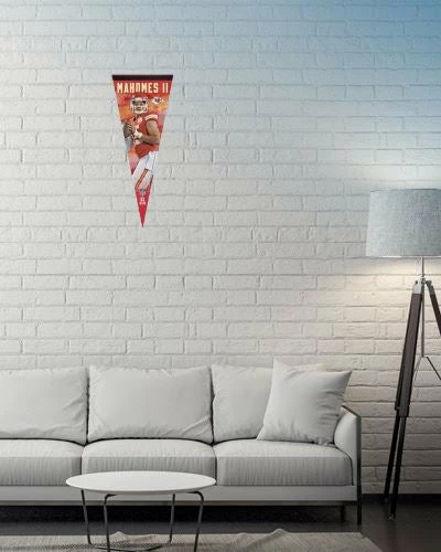 Show off your team pride at the game or in your home, office or fan cave with the Patrick Mahomes II Kansas City Chiefs 12″ X 30″ Premium Pennant. No one will question which team holds your loyalty when you show off this pennant. The Patrick Mahomes II Kansas City Chiefs 12″ X 30″ Premium Pennant is the perfect collectible to display your Chiefs pride!Â