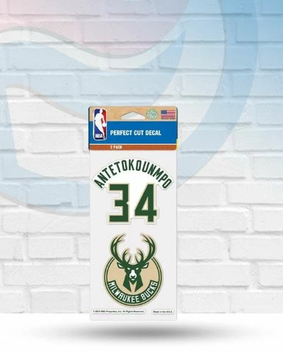 Show your team support with this Giannis Antetokounmpo Milwaukee Bucks set of two 4×4 perfect cut decals. These decals can be placed on a variety of surfaces with their self-adhesive back. No one will question who your favorite team is when you display these Giannis Antetokounmpo Milwaukee Bucks Set of two 4×4 perfect cut decals.Â