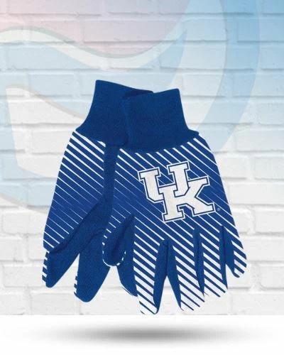 These Kentucky Wildcats Two Tone Striped Utility Gloves feature the colors and logos of your favorite team. The pair is officially licensed and constructed of heavyweight cotton twill with rubber grips on the palms. Great for working in your yard while you listen to the game or throw a pair in the car for those cold drives home!