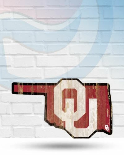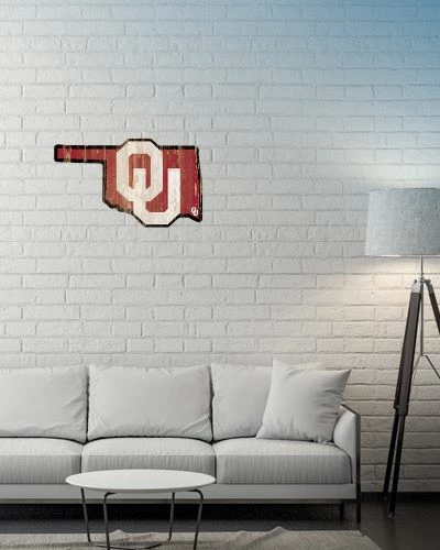 Display your team pride in your garage or fan cave with this Oklahoma Sooners State Shaped Wooden Sign. Its bold team graphics will have no one guessing who you cheer for. The Oklahoma Sooners State Shaped Wooden Sign is the perfect way to show your loyalty to the Sooners.Â