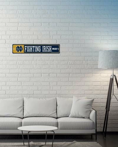 This uniquely shaped Notre Dame Fighting Irish street zone plastic way sign is the perfect item to hang and show off your team pride. Display it in your home, office or fan cave to show which team holds your loyalty.These signs work well as replacement to a poster because they are nearly indestructible in normal use, and can be washed with soap and water. The Notre Dame Fighting Irishstreet zone plastic way signis the perfect way to show your fandom.