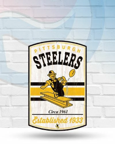 Display your team pride in your garage or fan cave with this Pittsburgh Steelers Retro 11″x17″ Wooden Sign. Its bold team graphics will have no one guessing who you cheer for. The Pittsburgh Steelers retro 11″x17″ Wooden Sign is the perfect way to show your loyalty to Steelers.Â